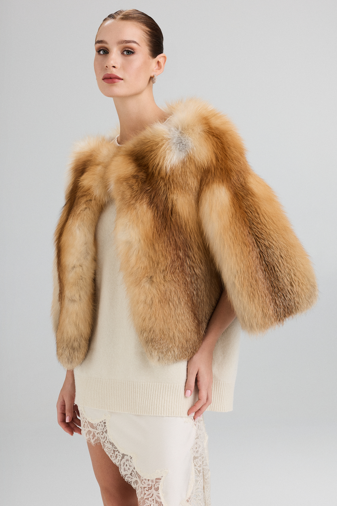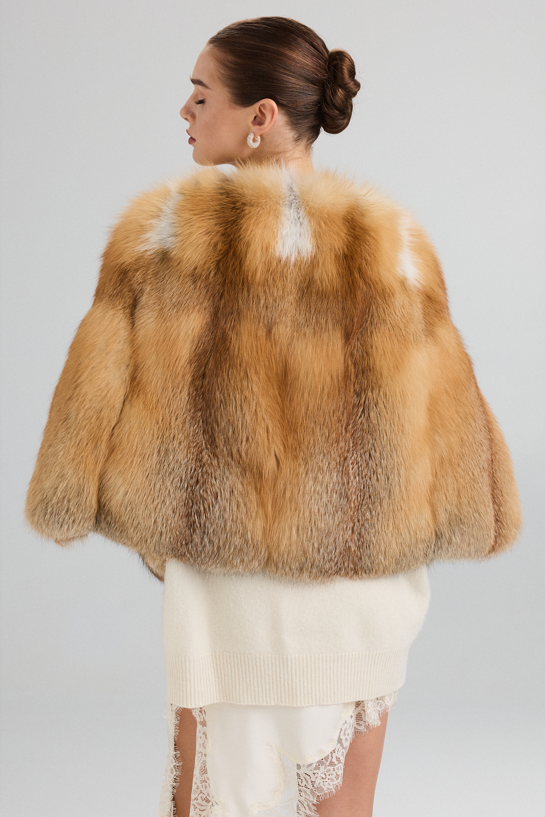 Unică, elegantă și absolut spectaculoasă, această capă din blană naturală de vulpe canadiană impresionează prin textura sa luxuriantă și nuanțele calde, autentice. Croiala clasică, cu linii ample și armonioase, pune în valoare frumusețea naturală a blănii, transformând piesa într-o alegere exclusivistă pentru garderoba de iarnă.