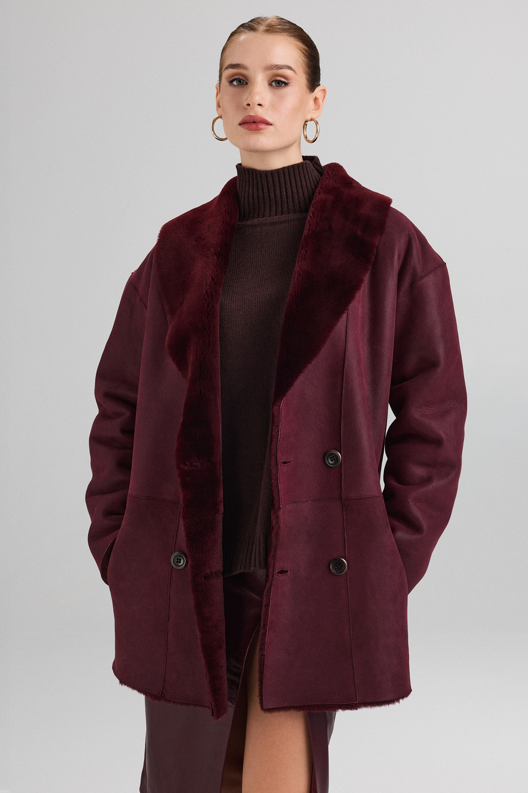 Fabricată din cea mai fină și moale blană merinos, această haina din blana de miel reversibilă este o alegere perfectă pentru zilele friguroase. Cu un design reversibil ingenios, puteți schimba între două aspecte diferite în funcție de preferințele dvs. Are două buzunare practice pentru a vă păstra mâinile calde și pentru a vă stoca mici obiecte. În plus, închiderea cu capse asigură o fixare ușoară și sigură. Cu nuanța sa delicată de roz pudrat, această Haina din blana de miel adaugă un strop de eleganță și rafinament oricărei ținute. Este disponibilă pe culoarea roz. Modelul nostru are 175 cm înalțime, poartă marimea 36, iar lungimea produsului este de 88 cm.