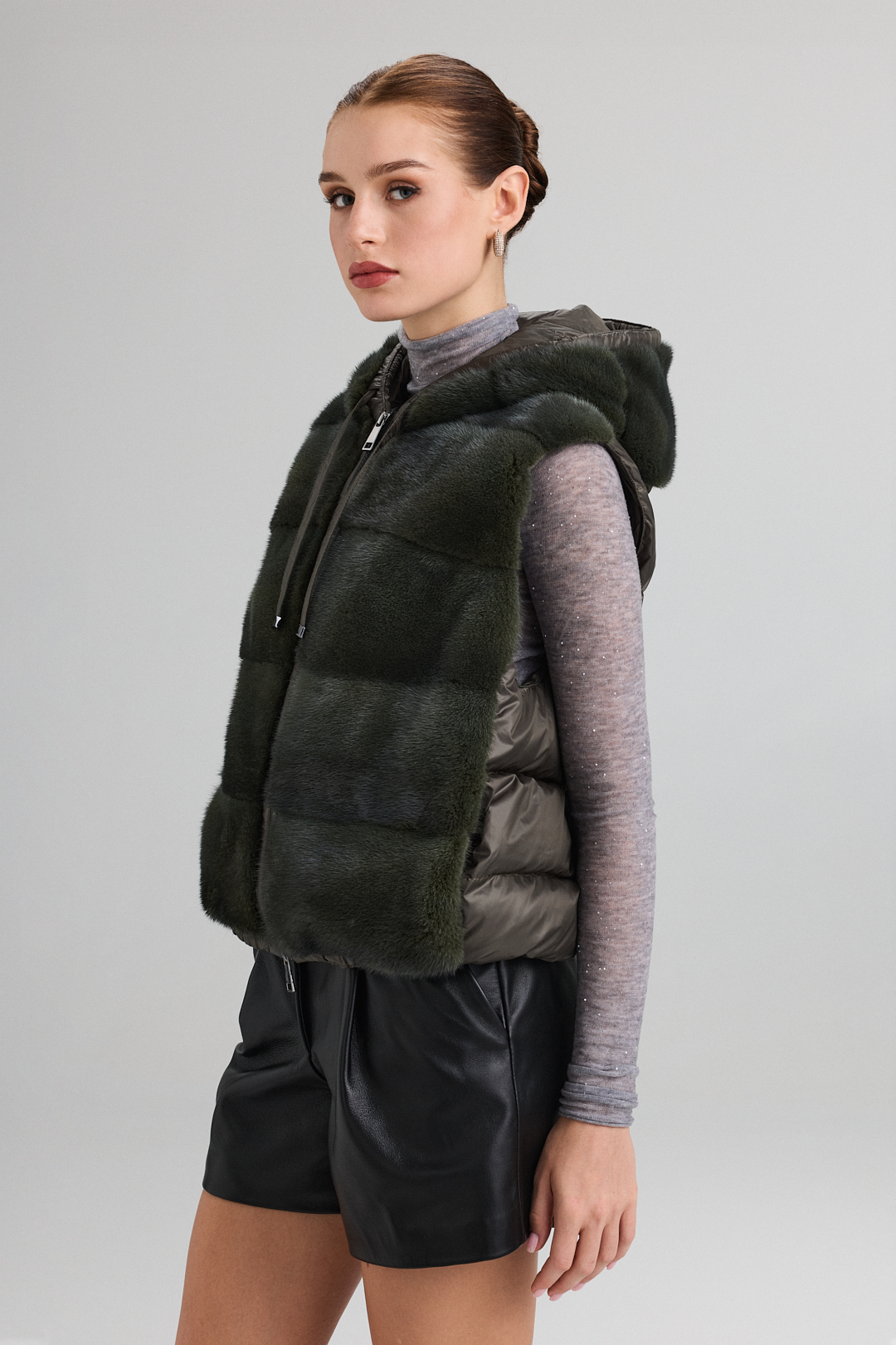Această vestă din blană de raton maro este o achiziție perfectă pentru zilele geroase în care tot ce ne dorim e să avem parte de căldură în permanență, dar și să ne păstrăm eleganța. Blana de raton este foarte deasă și moale, fiind un adevărat răsfăț să o purtăm datorită senzației plăcute pe care ne-o oferă și căldurii pe care o reține, nelăsând frigul să pătrundă. Această vestă din blană de raton maro are două buzunare generoase și se închide printr-un mecanism simplu tip ‘moș și babă’. Bucurați-vă de fiecare zi de iarnă și puneți-vă în valoare stilul cu această vestă din blană naturală de raton!